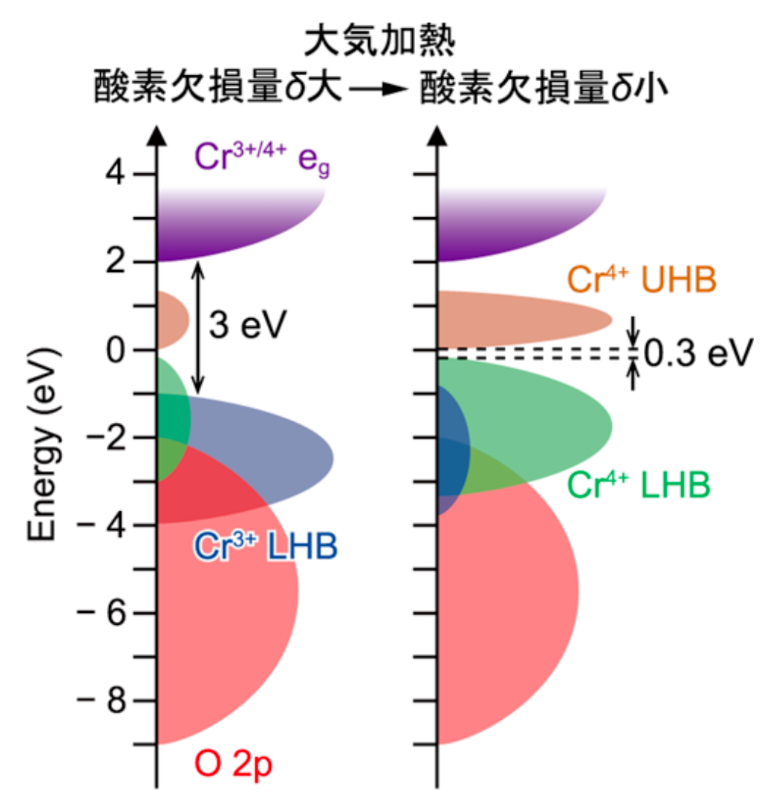 ・When oxygen was inserted into the Sr₃Cr₂O₇-δ thin film by heating in air while maintaining the layered structure, the electrical resistivity at room temperature decreased by approximately 1/200,000.
